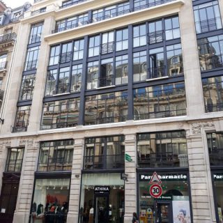 Conception et création de deux façades vitrées en acier « FINELINE » avec 2 ouvrants à doubles vantaux, deux ouvrants à un vantail et une porte d’entrée.